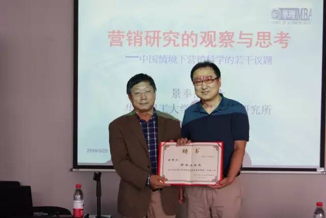 2016年5月25日下午15点,中国高校市场学研究会副会长、华东理工大学商学院景奉杰教授应学院邀请,在思东307教室做了题为“营销研究的观察与思考——中国情景下营销科学的若干热点领域”学术前沿讲座。学院副院长郝生跃教授等多名教师及近70名研究生参加了讲座。讲座由裘晓东教授主持。