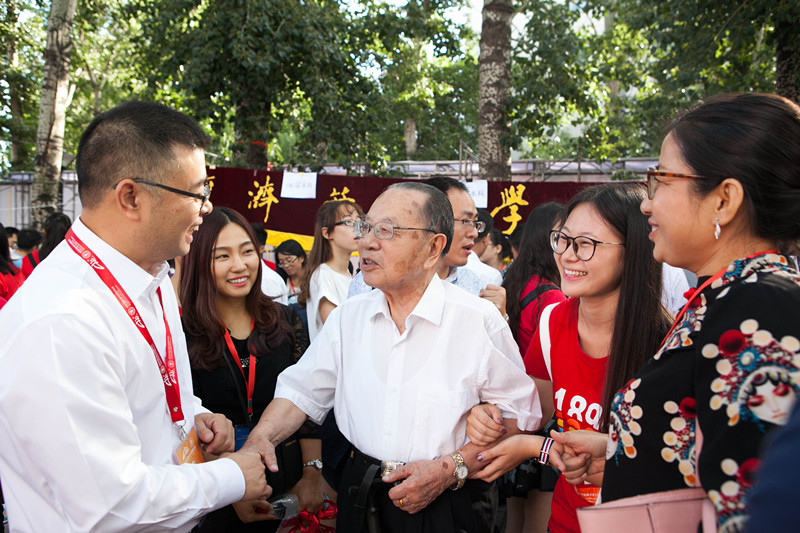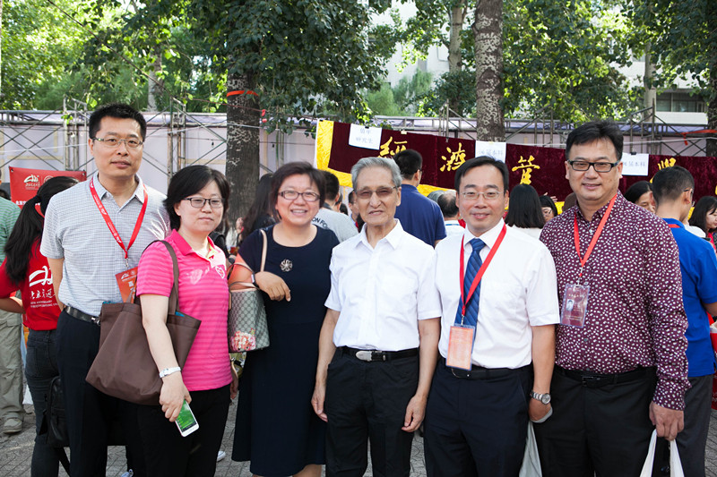 晨光熹微,凉风习习。海内外2000余名校友齐聚南门小树林报到,饼干姐姐SMT(领导团队)成员及学院各部门工作人员、众位班主任老师、志愿者们在南门小树林报到处热情接待每一位返校校友,并与之亲切交谈。校友们逐一签到,领取“菁菁”“冠冠”学院纪念小熊、带有学籍卡照片的实名胸牌、院友通讯、校庆纪念徽章等返校特别礼物,并纷纷于三面老照片展板处驻足观看、签名留念,校友们相互间亲切问候、热情拥抱,激动与思念之情溢于言表,报到现场处处洋溢着重逢的温馨与感动。返校校友不仅包括毕业三十、二十、十周年的专本硕博校友,还有毕业64年、60年、53年、52年、48年的整班返校的老学长老学姐们,有从美国、加拿大、澳大利亚等国家专程赶回来的兄弟姐妹们,还有带着“交二代”、“交三代”甚至“交四代”回来的大中小朋友们。