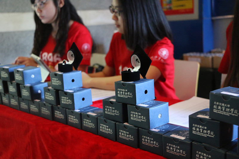 随后,校友们重聚在思源东楼,相约在饼干姐姐校友服务驿站。门前许愿墙献上自己对饼干姐姐的心愿祝福,领取盖有经管纪念章的明信片、刻有姓名及学号的校庆纪念专属戒指,为学院捐赠祝福、租借学士服拍照、参观思东611老物件纪念展区等。大会现场还有校友企业德国ABCDV网赞助的德国啤酒、面包等零食,受到校友热捧。
