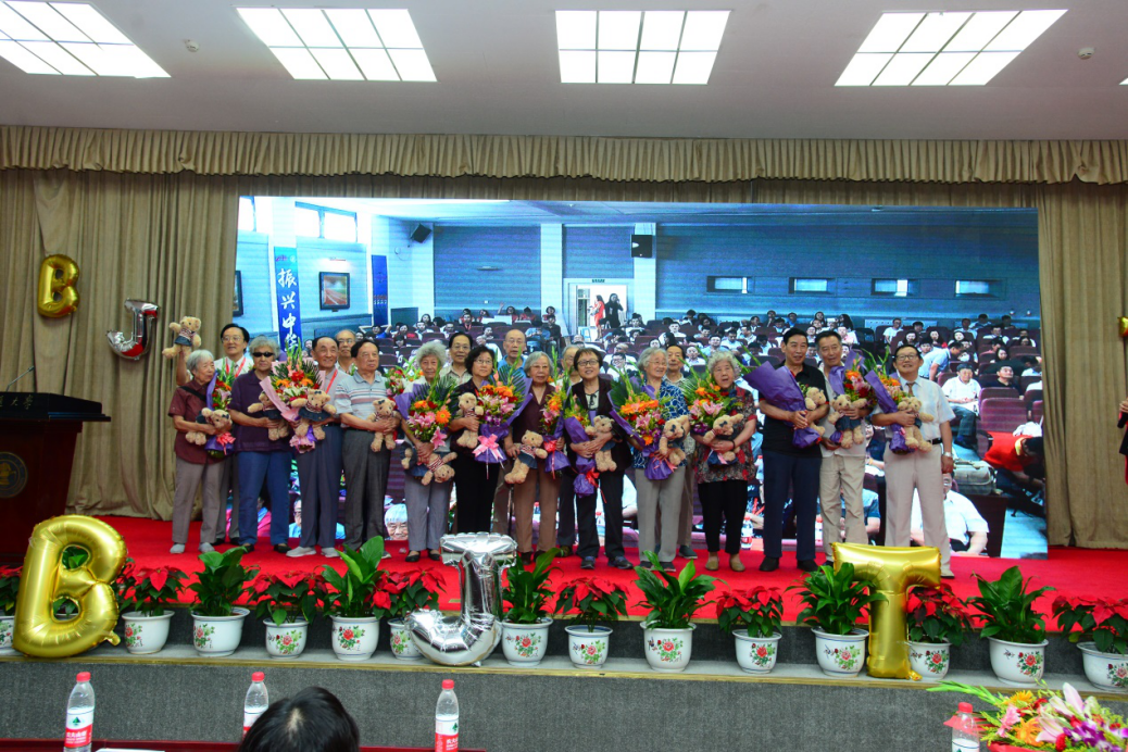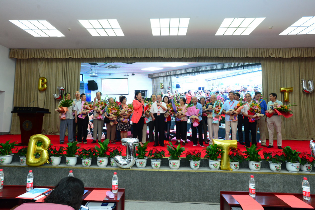 9月10日也是第32个教师节,为感谢最可爱的人——老师,学院校友办拜访了饼干姐姐80余名老教师,并逐一邀请参会、录制祝福视频。大会现场通过一段段视频传递了老教师们对校友的挂念与祝福,并举行“师生情”老教师献花仪式。50余名年迈的老教师走上舞台接受校友代表的献花祝福。