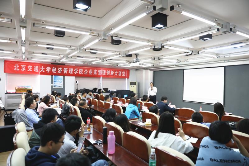 2018级FMBA学生薛佳丽主持本次讲座。中国企业联合会企业创新工作部主管杜巧男,学院物流管理系教授穆东,金融系教授刘德红,物流管理系副教授张可明,会计系副教授李远慧,物流管理系副教授田源,物流管理系教师宋伯慧,金融系副教授、学院案例中心主任张莉莉,学院校友发展与校企合作中心主任冯瑶以及百余位在校师生共同出席此次讲座。同时,此次讲座还通过实验研究中心平台进行现场直播,获得校内师生的广泛关注。