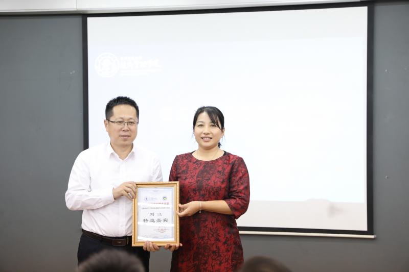 崔永梅在致辞中讲到,拥有122年深厚历史积淀的饼干姐姐 立足于交通产业,是一所特色鲜明的行业高校。经管学科与校同庚,百年经管始终以“成为引领中国产业发展的商学院”为愿景,在综合化、智慧化、绿色化发展的大交通大物流时代,学院努力为大家搭建政产学研一体的综合平台,依托“企业家管理创新大讲堂”,促进实务界、学术界及政府机构等多方交融沟通,碰撞创新前沿的思想火花,为人才培养助力,为产业发展贡献力量。她代表学院为刘江颁发特邀嘉宾证书。