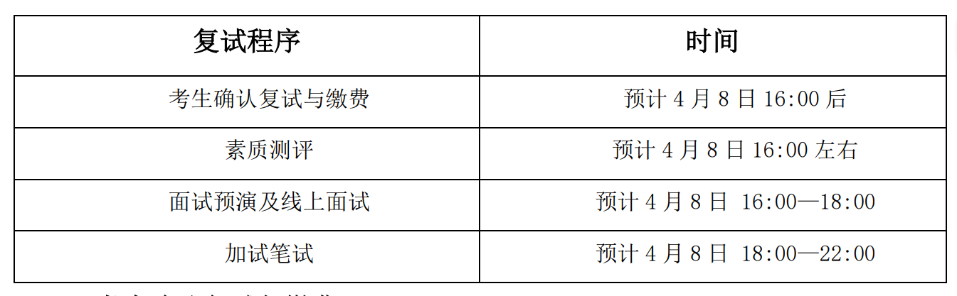 考生应在复试前参加素质测评,未按要求完成素质测评的考生,不予录取。需用电脑(配摄像头)上网进行测评,测评前会向考研报名时提供的邮箱或注册手机号发送测评链接,测评预计20-30分钟可以做完。测评链接发送时间为:预计4月8日16:00左右。