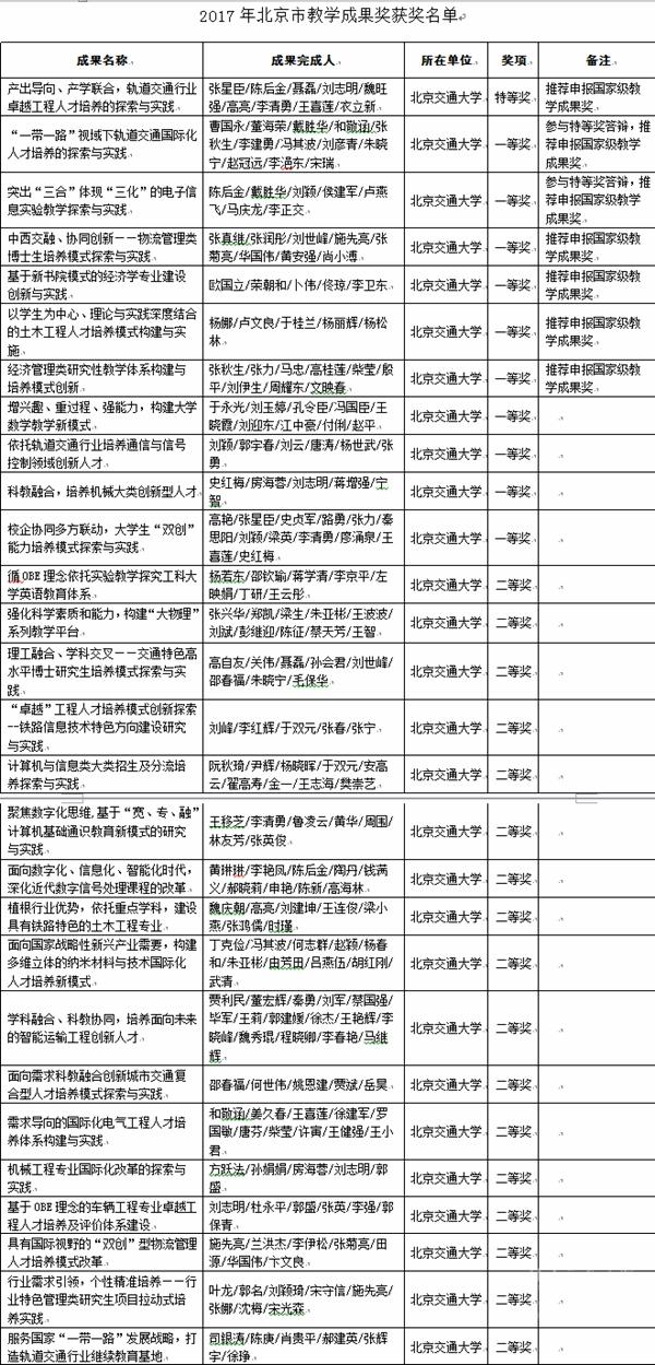 附:2017年北京市教学成果奖获奖名单